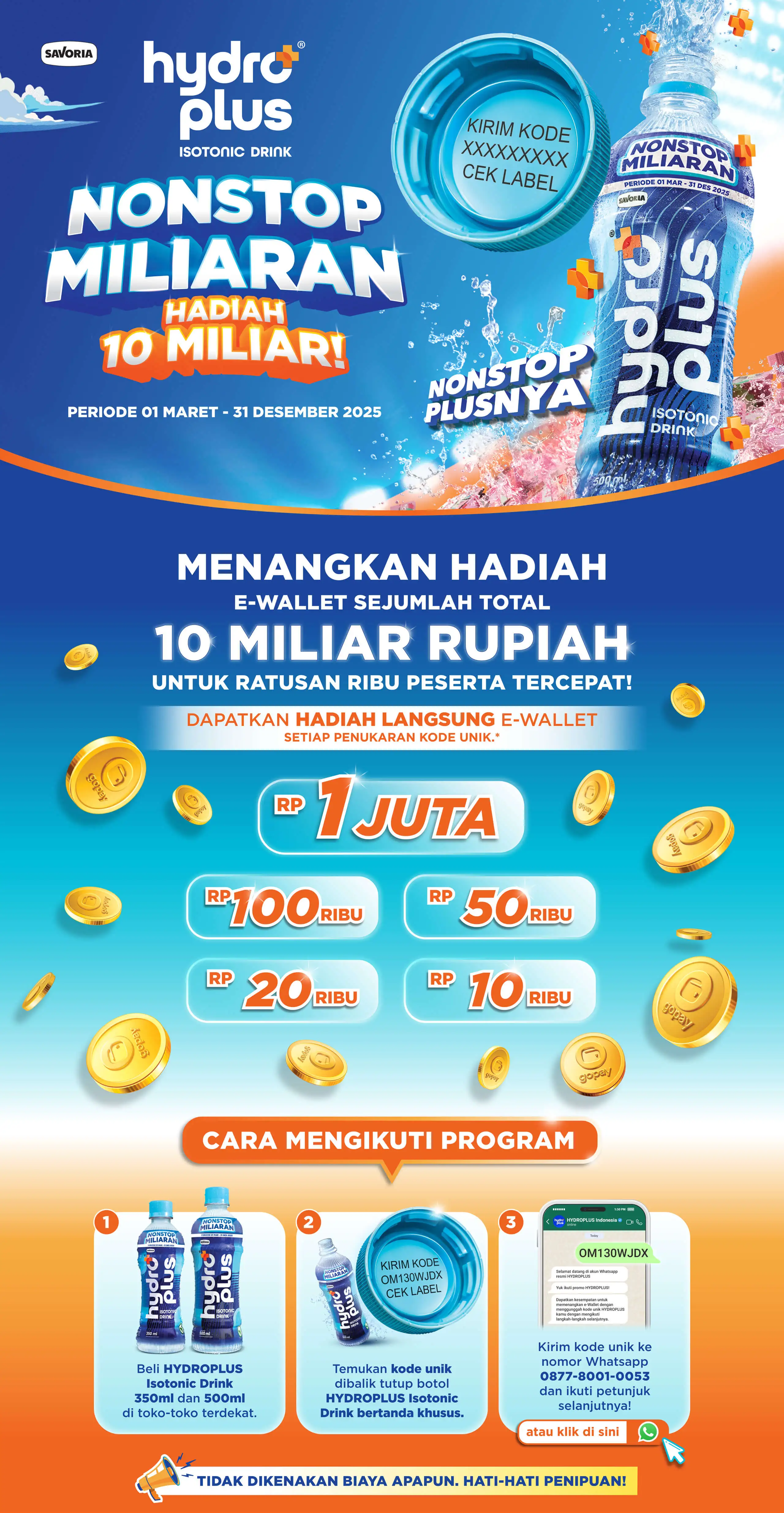 Nonstop Milyaran | Hydroplus - Minuman isotonik, Menangkan hadiah E-Wallet sejumlah total 10 milyar rupiah untuk ratusan ribu peserta tercepat, periode 01 Maret sampai 31 Desember 2025